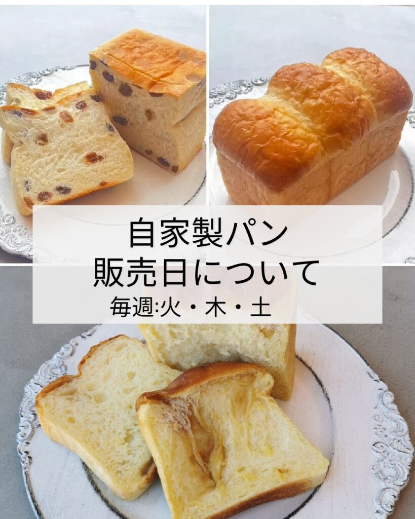 自家製パンの販売日について10月より、自家製パンの販売日が限定させていただきます。 毎週 火曜日・木曜日・土曜日 の3日間となります!! 事前ご予約も可能です。 ご迷惑おかけいたしますが、ご理解お願い致します。