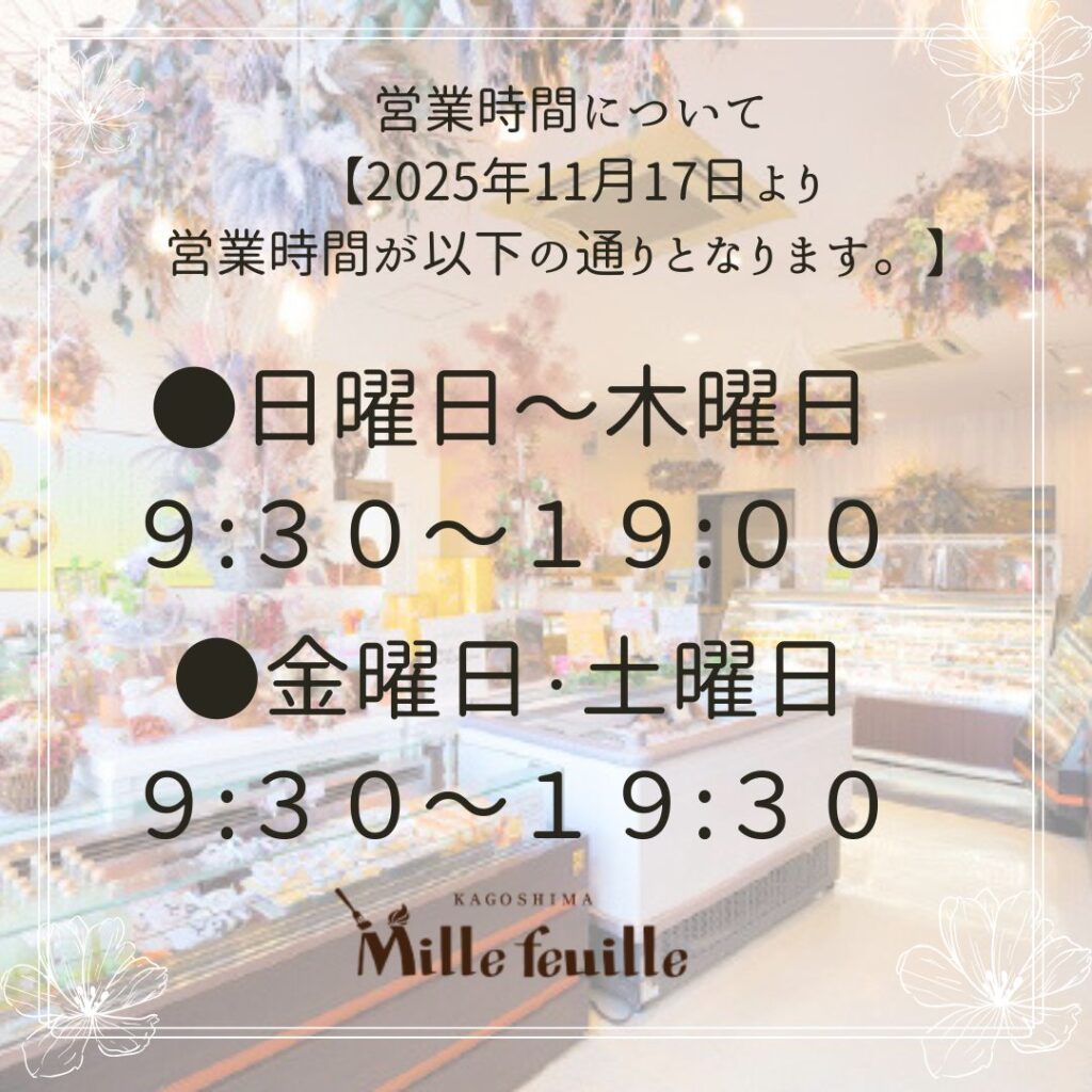 11月17日月曜日より営業時間が変更になります。 ●毎週、日曜日〜木曜日 9:30〜19:00 ●毎週、金曜日、土曜日は 9:30〜19:30 の営業とさせていただきます。